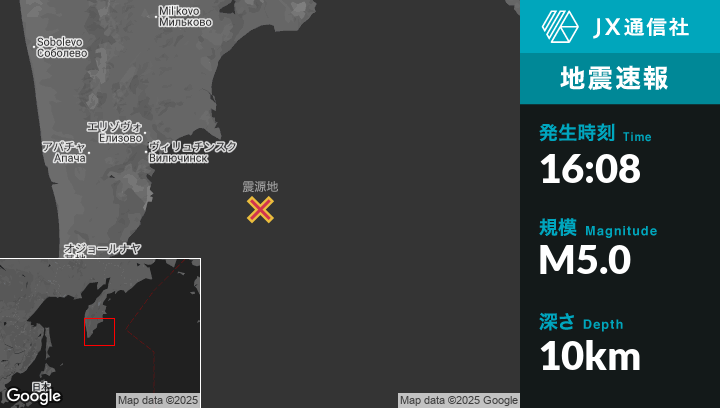 | 震源地 | ロシアのPetropavlovsk-Kamchatskyから東南東179kmの地点 |