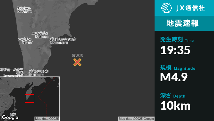| 震源地 | ロシアのPetropavlovsk-Kamchatskyから南東167kmの地点 |