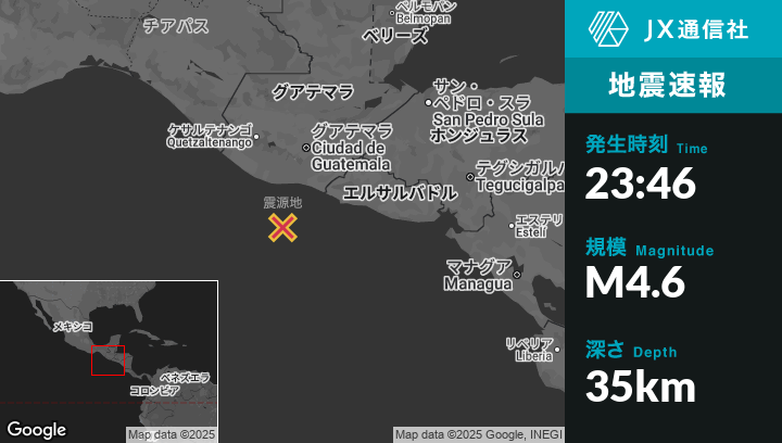 | 震源地 | グアテマラのPuerto San Joséから南南西85kmの地点 |