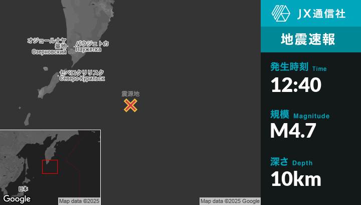 | 震源地 | ロシアのSevero-Kuril’skから東南東239kmの地点 |