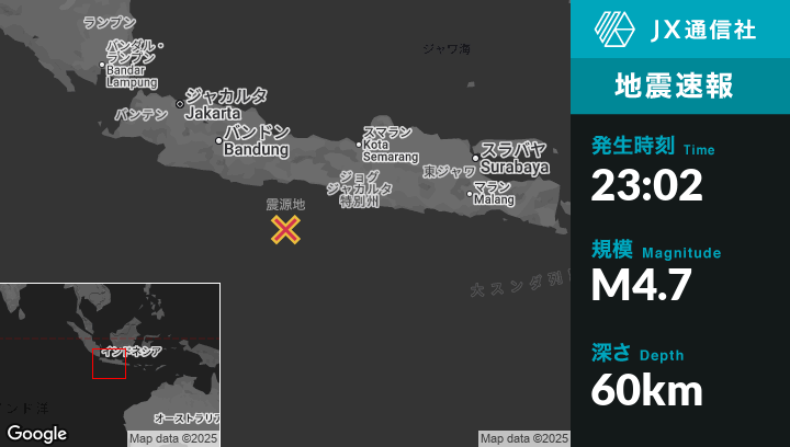 | 震源地 | インドネシアのCilacapから南92kmの地点 |