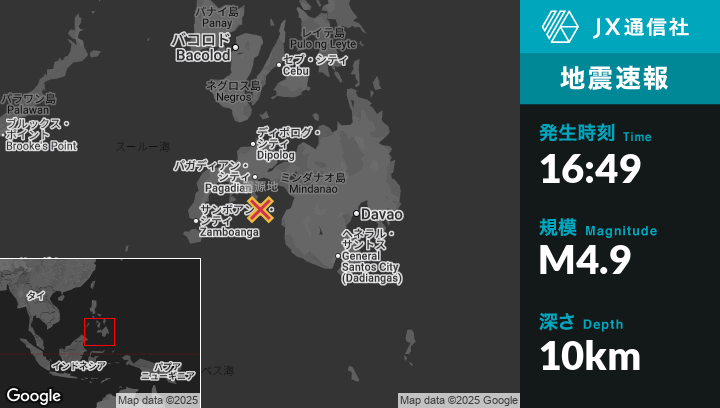 | 震源地 | フィリピンのMalimから南南東19kmの地点 |