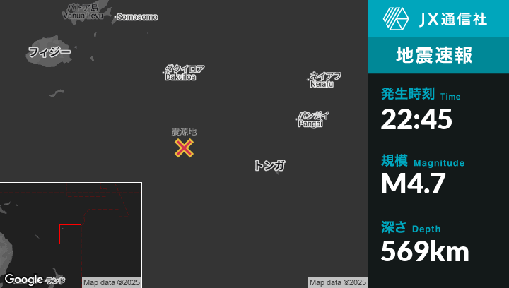 9月03日 22:45頃、トンガのHoumaから西北西273kmの地点でM4.7の地震がありました。