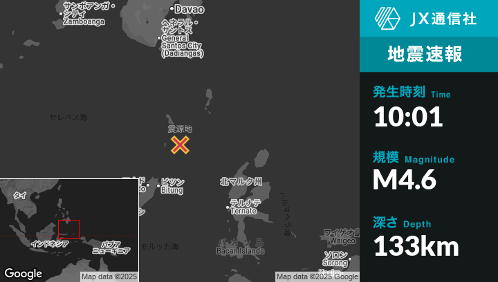 | 震源地 | インドネシアのBitungから北北東179kmの地点 |