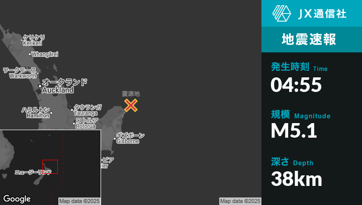 | 震源地 | ニュージーランドのHicks Bayから東北東42kmの地点 |
