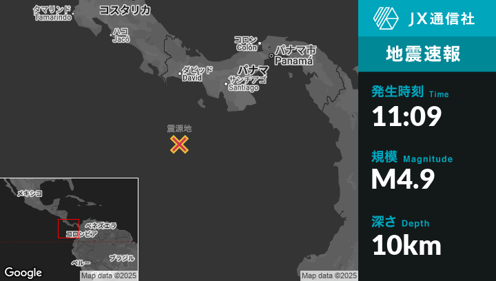 | 震源地 | パナマのBuricaから南南東197kmの地点 |