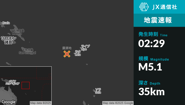 | 震源地 | ソロモン諸島のLataから西68kmの地点 |