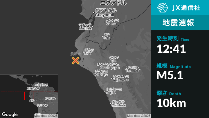 | 震源地 | ペルーのSechuraから西南西49kmの地点 |