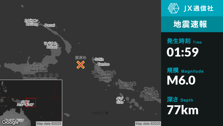 | 震源地 | パプアニューギニアのKokopoから南東206kmの地点 |