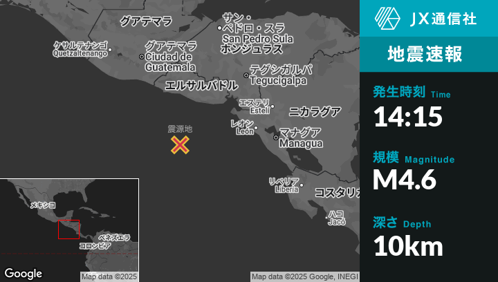 | 震源地 | エルサルバドルのPuerto El Triunfoから南南西161kmの地点 |