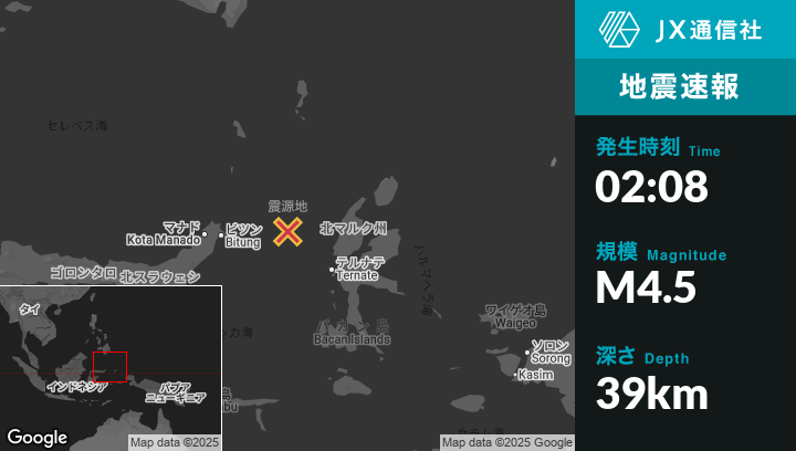 | 震源地 | インドネシアのTernateから北西136kmの地点 |