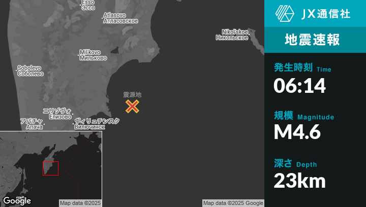 | 震源地 | ロシアのPetropavlovsk-Kamchatskyから東北東160kmの地点 |