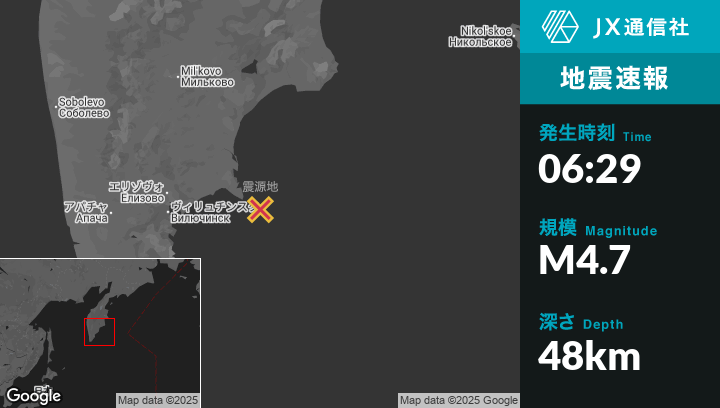 | 震源地 | ロシアのPetropavlovsk-Kamchatskyから東120kmの地点 |