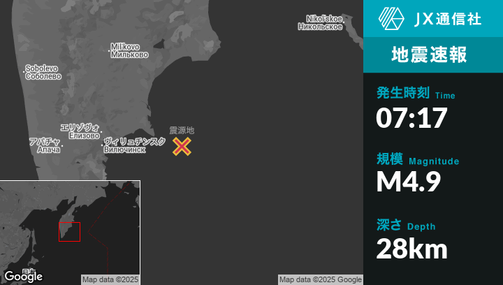 | 震源地 | ロシアのPetropavlovsk-Kamchatskyから東152kmの地点 |