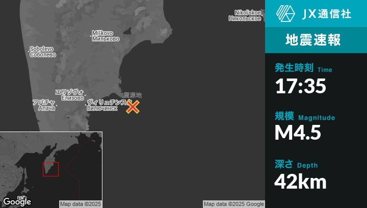 | 震源地 | ロシアのPetropavlovsk-Kamchatskyから東120kmの地点 |