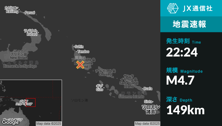 | 震源地 | パプアニューギニアのPangunaから西37kmの地点 |