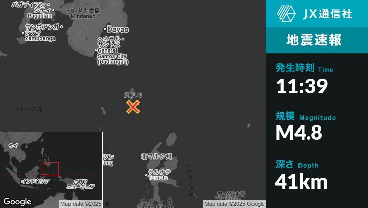 | 震源地 | フィリピンのSaranganiから南東227kmの地点 |