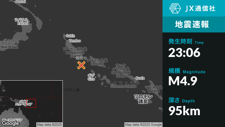 | 震源地 | パプアニューギニアのPangunaから南南東97kmの地点 |