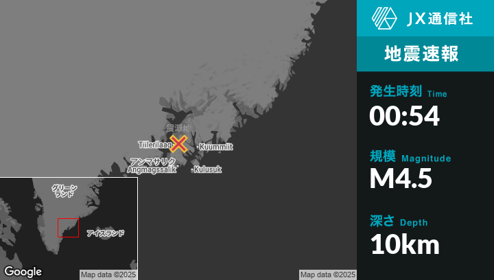 | 震源地 | グリーンランドのTasiilaqから北37kmの地点 |