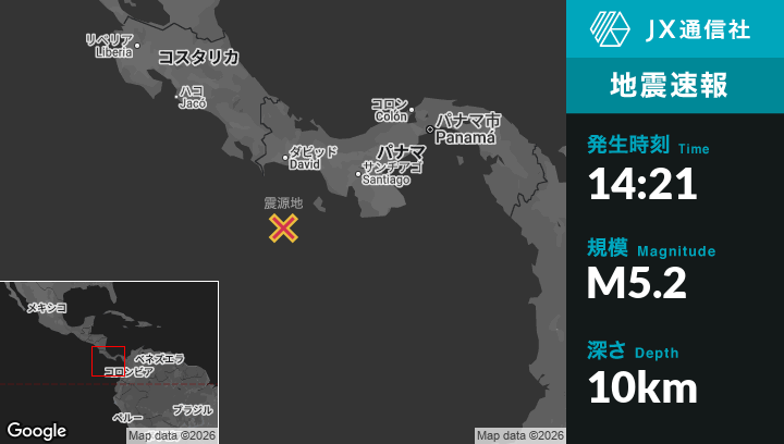 | 震源地 | パナマのBuricaから南南東109kmの地点 |