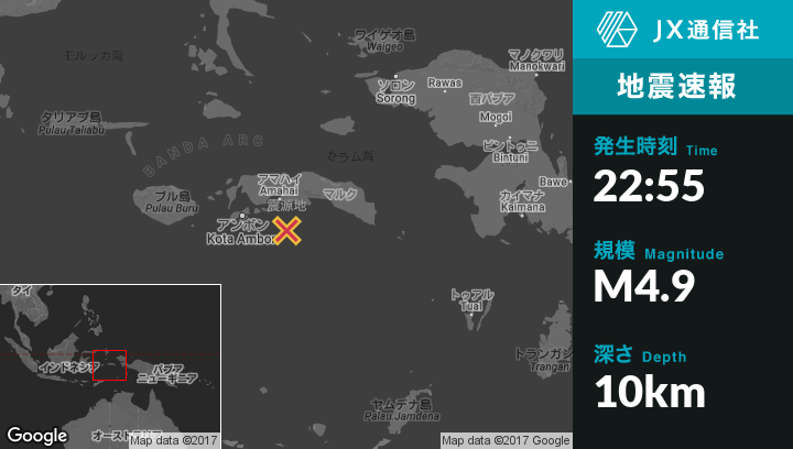 | 震源地 | インドネシアのSaparuaから東南東53kmの地点 |