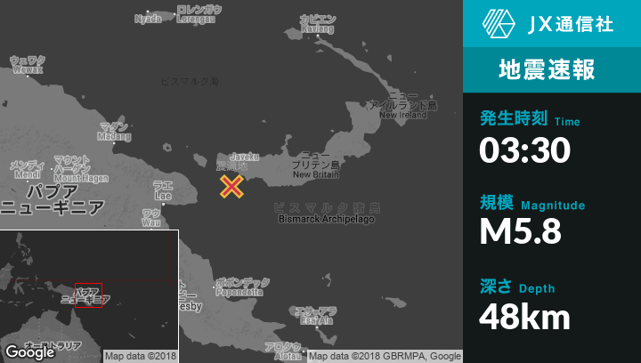 | 震源地 | パプアニューギニアのKandrianから西94kmの地点 |