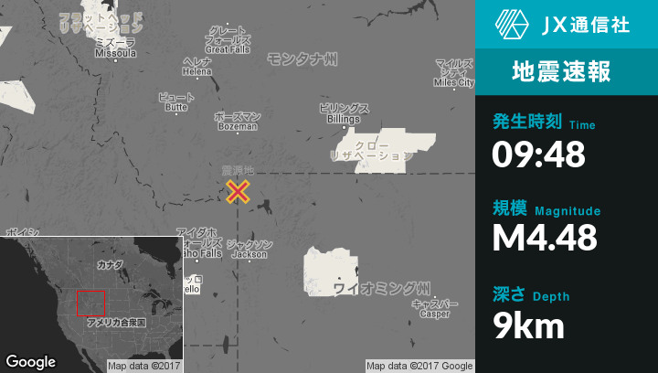 | 震源地 | モンタナ州のWest Yellowstoneから北北東13kmの地点 |