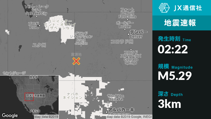 | 震源地 | コロラド州のDove Creekから北54kmの地点 |
