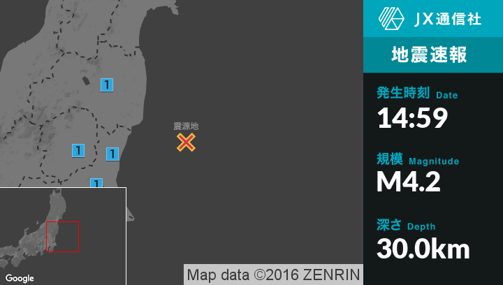 | 震度1 | 福島県中通り, 茨城県北部, 茨城県南部, 栃木県南部 |