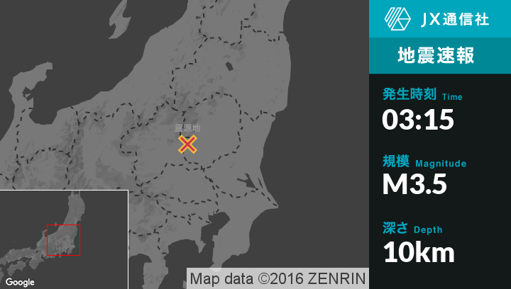 | 震度3 | 日光市, 桐生市 |