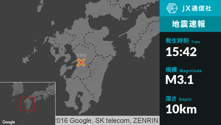 | 震度1 | 熊本西区, 八代市, 宇土市, 甲佐町, 氷川町 |