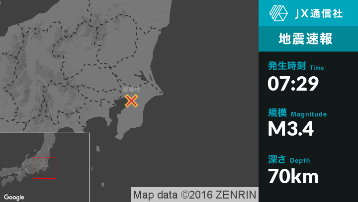 | 震度1 | 長柄町, 長南町, 千葉中央区, 千葉花見川区, 千葉稲毛区, 千葉緑区, 船橋市, 市原市, 八千代市, 白井市, 木更津市, 君津市, 富津市, 東京千代田区, 東京港区, 東京大田区, 東京渋谷区, 東京北区, 東京江戸川区, 調布市, 小平市, 横浜鶴見区, 横浜神奈川区, 横浜港南区, 横浜青葉区, 川崎川崎区, 川崎中原区, 三浦市, 相模原中央区 |