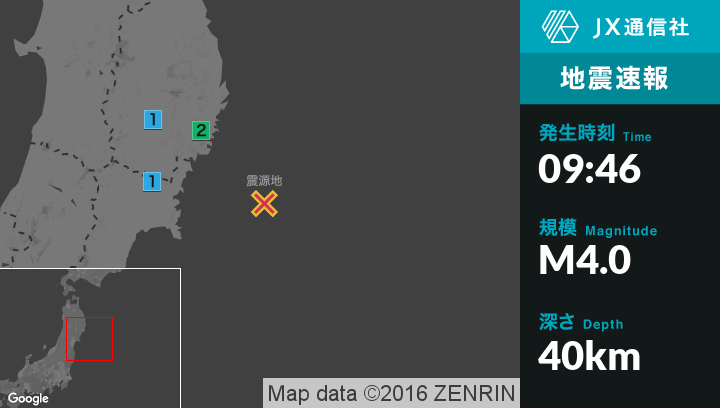 | 震度1 | 釜石市, 住田町, 一関市, 気仙沼市, 南三陸町 |