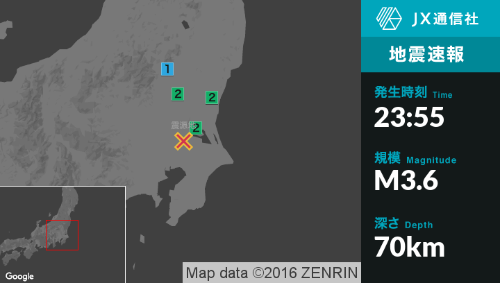 震度1水戸市, 常陸大宮市, 小美玉市, 城里町, 茨城古河市, 結城市, 下妻市, 常総市, 取手市, 牛久市, つくば市, 守谷市, 筑西市, 稲敷市, かすみがうら市, 行方市, つくばみらい市, 阿見町, 境町, 足利市, 佐野市, 鹿沼市, 益子町, 茂木町, 壬生町, 野木町, 日光市, 桐生市, 群馬明和町, 邑楽町, 熊谷市, 加須市, 東松山市, 久喜市, 滑川町, さいたま北区, さいたま浦和区, 春日部市, 宮代町, 野田市, 成田市, 柏市, 八千代市, 鎌ケ谷市, 白井市, 栄町