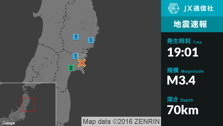 震度1気仙沼市, 登米市, 栗原市, 大崎市, 南三陸町, 住田町, 一関市