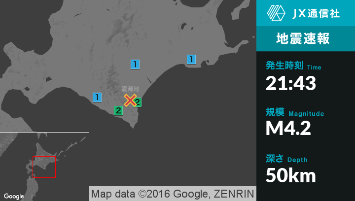 | 震度1 | 様似町, えりも町, 更別村, 十勝大樹町, 新ひだか町, 幕別町, 浦幌町, 白糠町 |