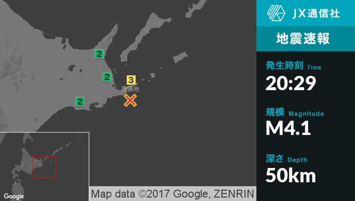 | 震度2 | 浜中町, 中標津町, 標津町, 別海町 |