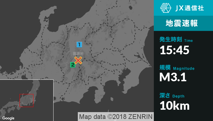 | 震度1 | 箕輪町, 諏訪市, 塩尻市 |