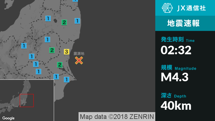 | 震度2 | 常陸太田市, 高萩市, 笠間市, ひたちなか市, 常陸大宮市, 那珂市, 小美玉市, 茨城町, 城里町, 東海村, 土浦市, 石岡市, つくば市, 鉾田市, 境町, 郡山市, 白河市, 須賀川市, 鏡石町, 天栄村, 泉崎村, 矢吹町, 棚倉町, 矢祭町, 石川町, 玉川村, 浅川町, 古殿町, 那須烏山市, 市貝町, 芳賀町 |