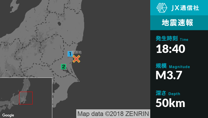 | 震度1 | 石岡市, つくば市, 筑西市, かすみがうら市, 桜川市, 美浦村, 水戸市, 日立市, 笠間市, ひたちなか市, 常陸大宮市, 小美玉市, 茨城町, 城里町, 東海村 |