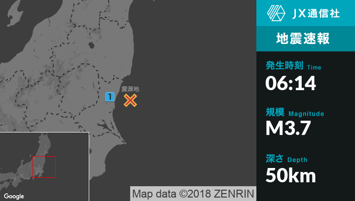 | 震度1 | 水戸市, 日立市, 笠間市, ひたちなか市, 常陸大宮市, 城里町, 東海村 |