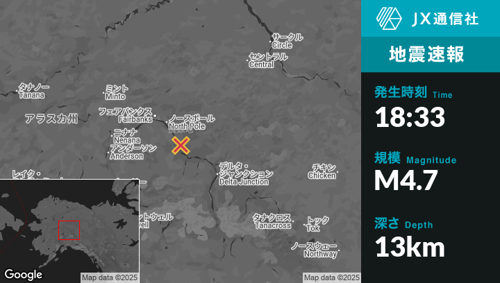 | 震源地 | アラスカのSalchaから南3kmの地点 |