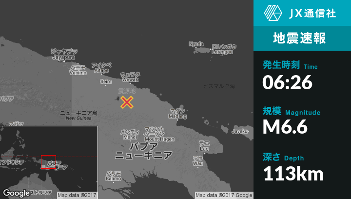 | 震源地 | パプアニューギニアのAngoramから西南西68kmの地点 |