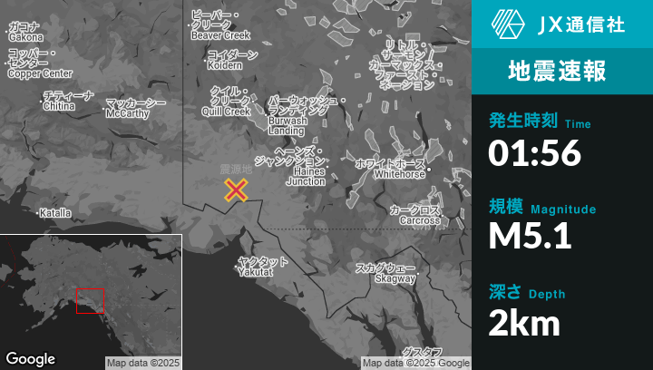 | 震源地 | アラスカのYakutatから北109kmの地点 |