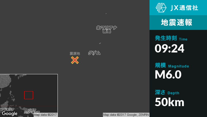 | 震源地 | グアムのMerizo Villageから西153kmの地点 |
