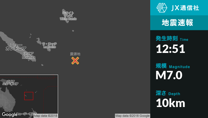 | 震源地 | ニューカレドニアのIle Hunterから西214kmの地点 |