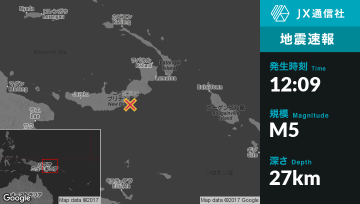| 震源地 | パプアニューギニアのKimbeから東南東119kmの地点 |