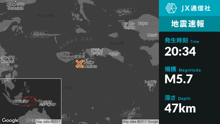 | 震源地 | インドネシアのHilaから西南西53kmの地点 |