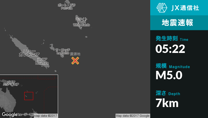 | 震源地 | ニューカレドニアのTadineから東南東114kmの地点 |