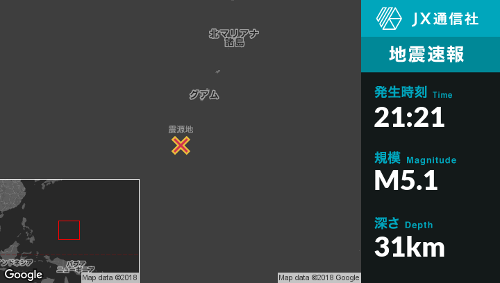 | 震源地 | グアムのMerizo Villageから南南西157kmの地点 |